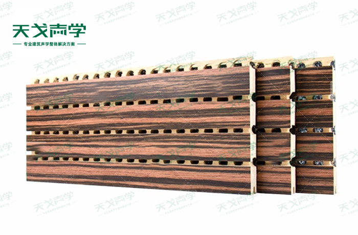 天戈實木槽木吸音板是一種在密度板的正面開槽、背面穿孔的狹縫共振吸音材料。實木槽木吸音板對吸聲頻譜選擇性很強,對中低頻有很好的吸聲性能。若在吸聲結(jié)構(gòu)后空腔填入適量的吸聲棉可提高中、高頻吸聲效果,標準化模塊設(shè)計,采用插槽、龍骨結(jié)構(gòu),安裝簡易,常用于墻面或天花裝飾。