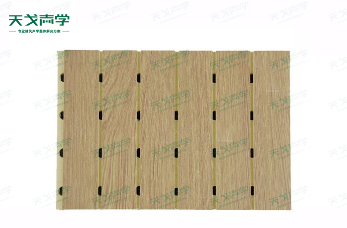 天戈木塑吸音板(WCP槽孔吸聲板)采用生態(tài)木的加工工藝,是一種在基材上正面開槽、背面穿孔的狹縫共振吸音材料。使得產(chǎn)品不怕水、不吸水、不龜裂、不變形,且具有傳統(tǒng)裝飾材料的隔熱、防火、防塵、質(zhì)輕、環(huán)保,吸聲效果佳、施工方便等特點。若在吸聲結(jié)構(gòu)后空腔填入適量的吸音棉可提高中、高頻吸聲效果,標準化模塊設計,采用插槽、龍骨結(jié)構(gòu),安裝簡易,常用于墻面或天花裝飾。