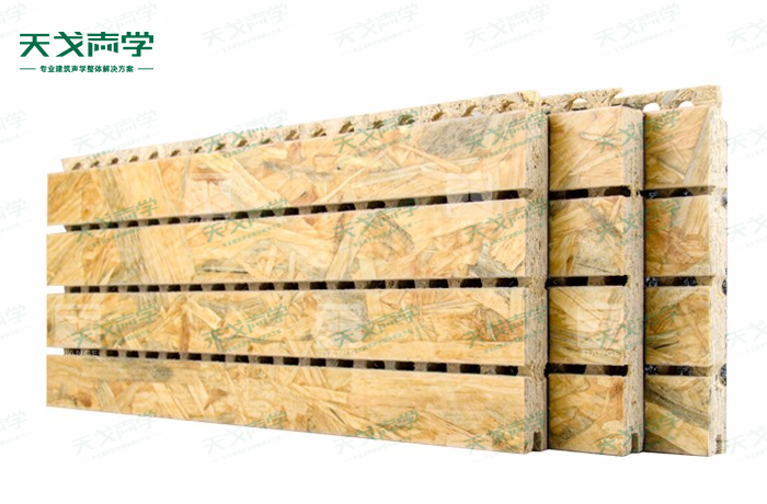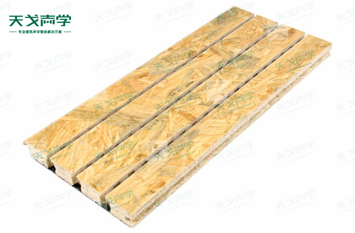 天戈麥秸板槽木吸音板是一種在密度板的正面開槽、背面穿孔的狹縫共振吸音材料。麥秸板槽木吸音板對吸聲頻譜選擇性很強,對中低頻有很好的吸聲性能。若在吸聲結構后空腔填入適量的吸聲棉可提高中、高頻吸聲效果,標準化模塊設計,采用插槽、龍骨結構,安裝簡易,常用于墻面或天花裝飾。