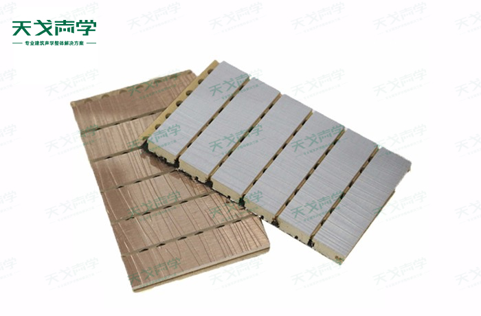 天戈多功能廳槽木吸音板是一種在密度板的正面開槽、背面穿孔的狹縫共振吸音材料。槽木吸音板對吸聲頻譜選擇性很強,對中低頻有很好的吸聲性能。若在吸聲結(jié)構(gòu)后空腔填入適量的吸聲棉可提高中、高頻吸聲效果,標準化模塊設計,采用插槽、龍骨結(jié)構(gòu),安裝簡易,常用于墻面或天花裝飾。