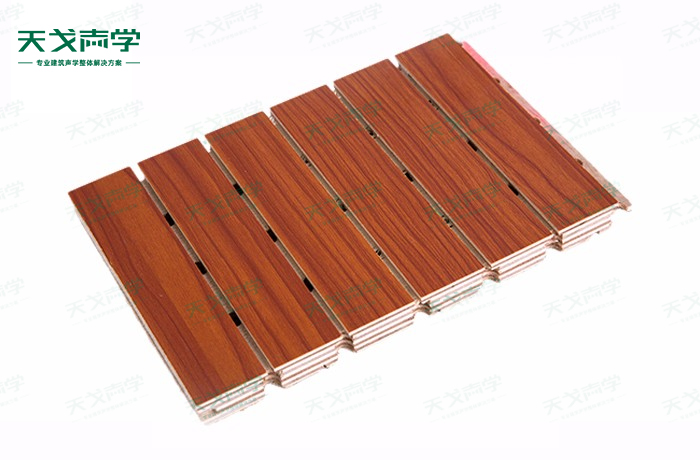 天戈錄音棚槽木吸音板是一種在密度板的正面開槽、背面穿孔的狹縫共振吸音材料。槽木吸音板對吸聲頻譜選擇性很強(qiáng),對中低頻有很好的吸聲性能。若在錄音棚吸音板后空腔填入適量的吸聲棉可提高中、高頻吸聲效果,標(biāo)準(zhǔn)化模塊設(shè)計(jì),采用插槽、龍骨結(jié)構(gòu),安裝簡易,常用于墻面或天花裝飾。