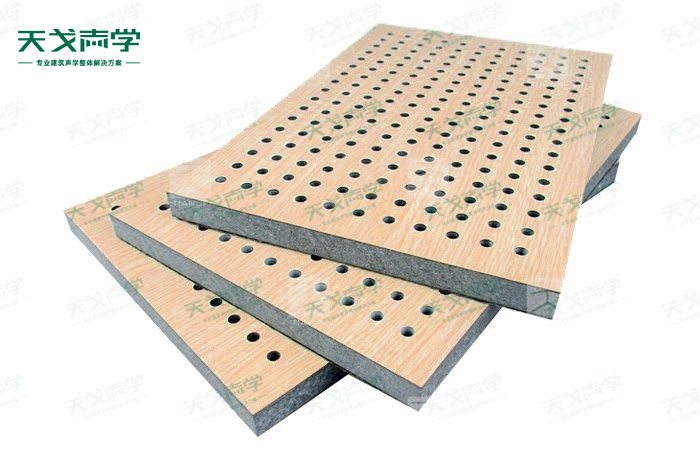 天戈玻鎂防火吸音板飾面顏色及材料選擇性廣,孔徑、孔距可根據(jù)客戶要求調(diào)整,能很好地滿足客戶多樣化的聲學(xué)及裝飾需求。孔木吸音板對(duì)吸聲頻譜選擇性較強(qiáng),對(duì)中低頻有很好的吸聲性能。如在吸聲結(jié)構(gòu)后空腔上填入適量的吸聲棉可提高中、高頻吸聲效果。
