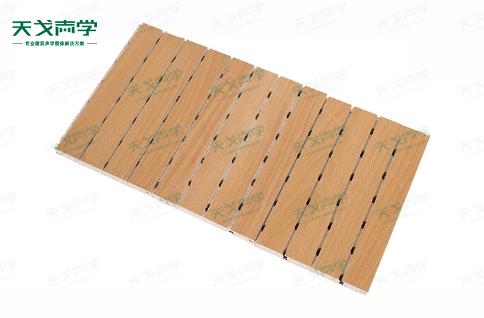天戈防火玻鎂吸音板是一種在密度板的正面開(kāi)槽、背面穿孔的狹縫共振吸音材料。玻鎂吸音板對(duì)吸聲頻譜選擇性很強(qiáng),對(duì)中低頻有很好的吸聲性能。若在吸聲結(jié)構(gòu)后空腔填入適量的吸聲棉可提高中、高頻吸聲效果,標(biāo)準(zhǔn)化模塊設(shè)計(jì),采用插槽、龍骨結(jié)構(gòu),安裝簡(jiǎn)易,常用于墻面或天花裝飾。