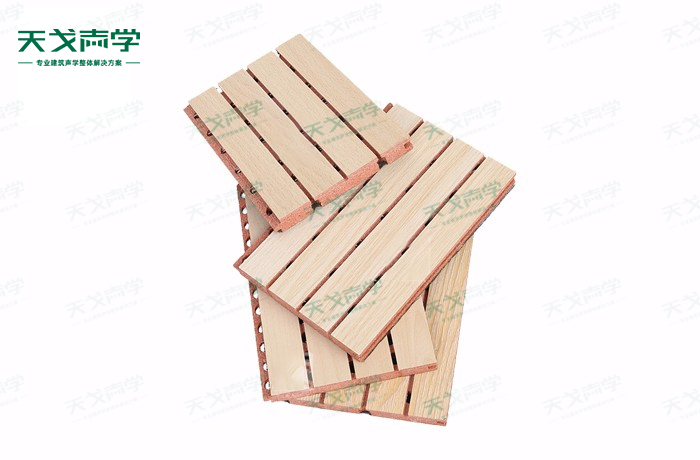 天戈紅色玻鎂槽木吸音板是一種在密度板的正面開(kāi)槽、背面穿孔的狹縫共振吸音材料。紅色玻鎂槽木吸音板對(duì)吸聲頻譜選擇性很強(qiáng),對(duì)中低頻有很好的吸聲性能。若在吸聲結(jié)構(gòu)后空腔填入適量的吸聲棉可提高中、高頻吸聲效果,標(biāo)準(zhǔn)化模塊設(shè)計(jì),采用插槽、龍骨結(jié)構(gòu),安裝簡(jiǎn)易,常用于墻面或天花裝飾。