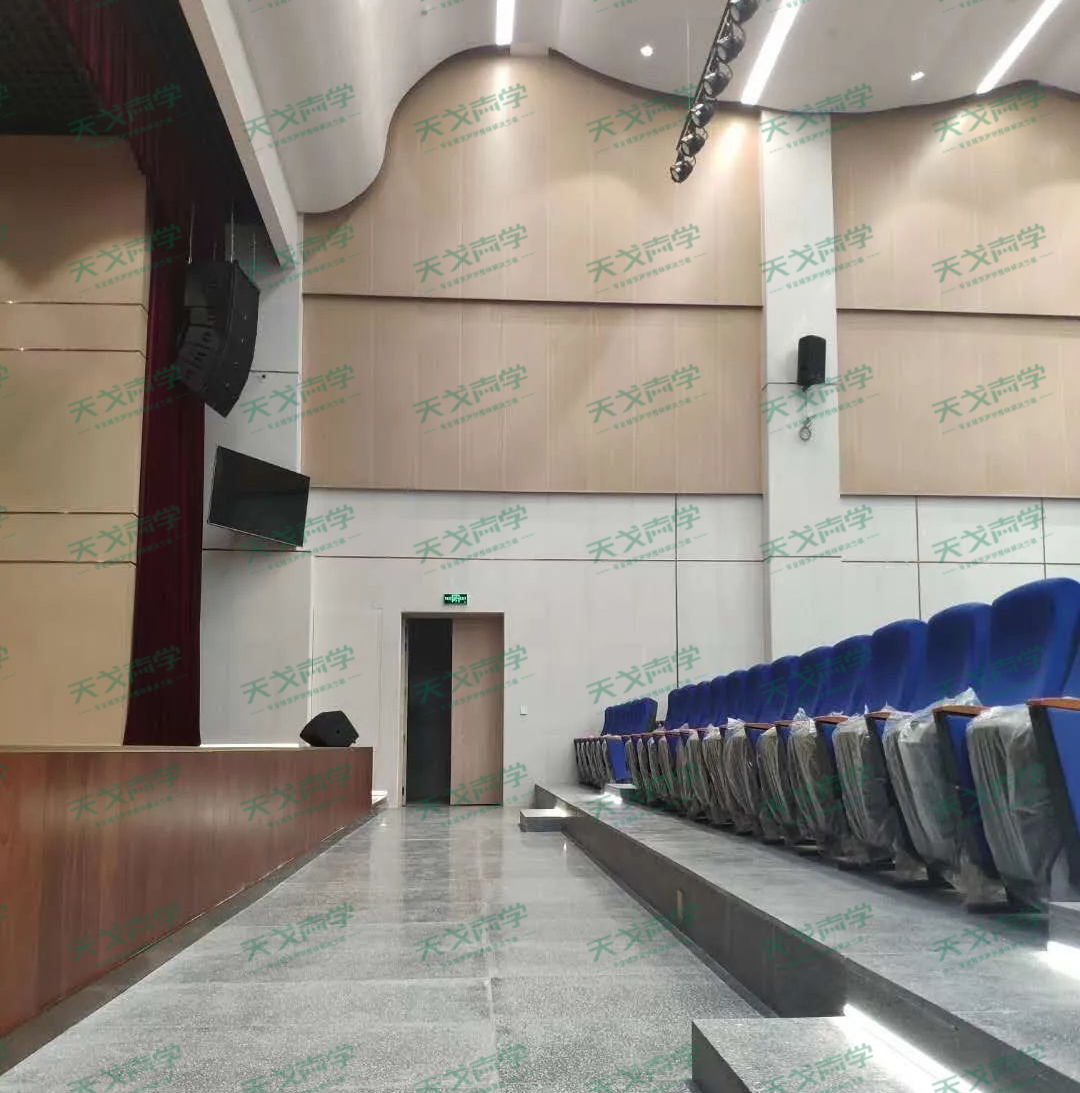 山東濟(jì)南某報(bào)告廳的聲學(xué)裝飾工程采用了天戈聲學(xué)自主生產(chǎn)的了孔木吸音板,孔木吸音板是一款優(yōu)質(zhì)的環(huán)保吸聲材料,被廣泛的運(yùn)用在體育館、報(bào)告廳、劇院等聲學(xué)要求高的場(chǎng)所。