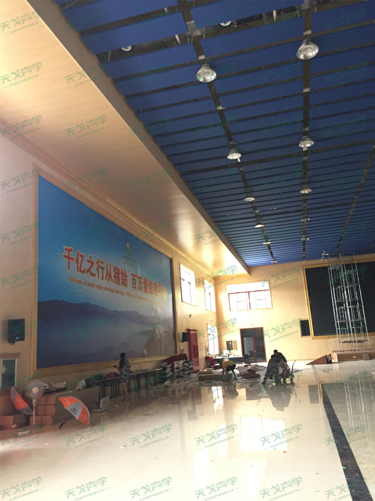 天戈聲學(xué)根據(jù)廣西貴港八墉企業(yè)體育館現(xiàn)有的問題和實際情況,選用1200平方米的槽木吸音板作為墻面吸音使用,另在體育館頂棚使用了800平方米的吸聲體進行吸音,從而使到體育館內(nèi)達到最佳的混響時間,聲場均勻且清晰度高.