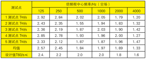 經(jīng)過聲學(xué)改造后,進行現(xiàn)場的聲學(xué)效果測試,測試結(jié)果如下:
