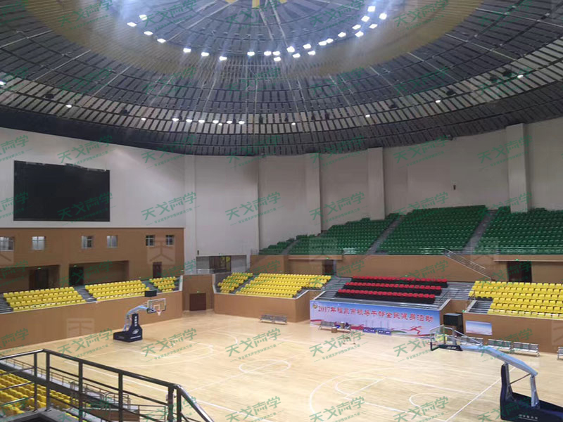 聲聚焦:聲音在遇到凹的墻面或天花棚頂時(shí)將會(huì)產(chǎn)生聲聚焦,使某些點(diǎn)或某些區(qū)域的聲壓級(jí)遠(yuǎn)遠(yuǎn)大于其它位置,導(dǎo)致聲場(chǎng)分布不均勻,出現(xiàn)“聲染色”和“聲反饋嘯叫”等音質(zhì)缺陷。體育館的弧形拱頂和圓形墻體,是典型的容易產(chǎn)生聲聚焦的結(jié)構(gòu)。天戈聲學(xué)在館內(nèi)增加適量的吸聲材料(充分利用墻面和頂部),即把混響時(shí)間縮短下來(lái),其中的技術(shù)難點(diǎn)在于設(shè)計(jì)計(jì)算的精確性和施工工藝的嚴(yán)謹(jǐn)性。