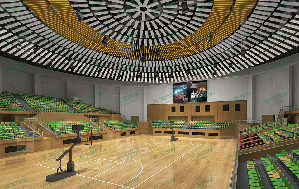 一般來(lái)說(shuō) ,體育館常見的聲學(xué)缺陷不外乎兩種:混響時(shí)間過(guò)長(zhǎng)、存在較嚴(yán)重的聲聚焦和顫動(dòng)回聲: