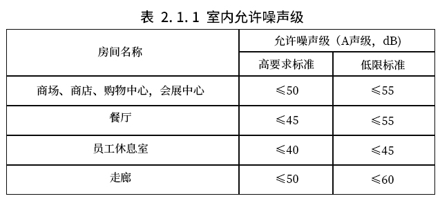 2.1.1 商業(yè)建筑各房間內(nèi)空?qǐng)鰰r(shí)的噪聲級(jí),應(yīng)符合表2.1.1的規(guī)定。